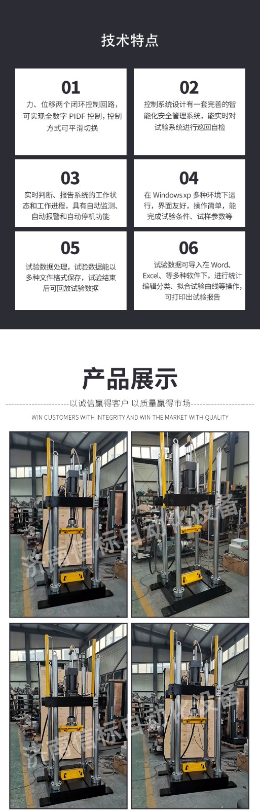 濟南信標自動化設備有限公司主要生產:動靜態萬能疲勞試驗機,接骨板彎曲試驗機,縫合線拉伸疲勞試驗機,髖膝關節磨損試驗機,電子萬能試驗機、液壓萬能試驗機、巖石三軸、四軸,電液拉力試驗機,材料試驗機,高低溫蠕變,高低頻疲勞,拉伸、扭轉、杯突等二十多個系列兩千多個的品種。