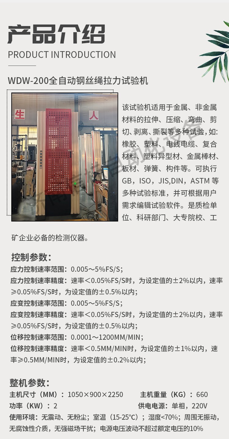 WDW-200全自動鋼絲繩拉力試驗機