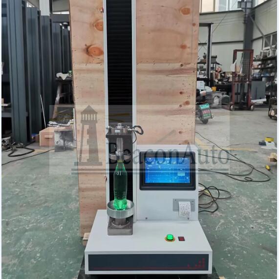 WDY-1PET瓶側壓強度試驗機 產品型號:WDY-1 產品用途:WDY-1PET瓶側壓強度試驗機用于檢測PET瓶的頂壓強度、頂壓變形、平壓強度和側壓強度;該機廣泛應用于橡膠、塑料、紡織物、防水材料、無紡布等非金屬材料及金屬絲、金屬箔、金屬片的壓縮力學性能試驗。 WDY-1PET瓶側壓強度試驗機產品特點:1、采用高精度、全數字調速系統及精密減速機, 驅動精密絲杠副進行試驗,實現試驗速度的大范圍調節, 試驗過程噪音低、運行平穩。 2、萬向節采用十字插銷結構,而且具有擺角限制功能, 一方面便于試樣夾持,保證試驗同心度, 另一方面很好的消除了不規則試樣對傳感器的影響。 3、觸摸鍵操作方式,液晶顯示器實時顯示。 顯示界面可顯示試驗方法選擇界面、試驗參數選擇界面、試驗操作及結果顯示界面和曲線顯示界面,方便快捷。 4、可實現試樣裝夾時橫梁快慢升降調整,具有過流、過壓、過載等保護裝置。 5、選配微機接口,可外接微機實現試驗過程的控制及數據的存儲、打印。